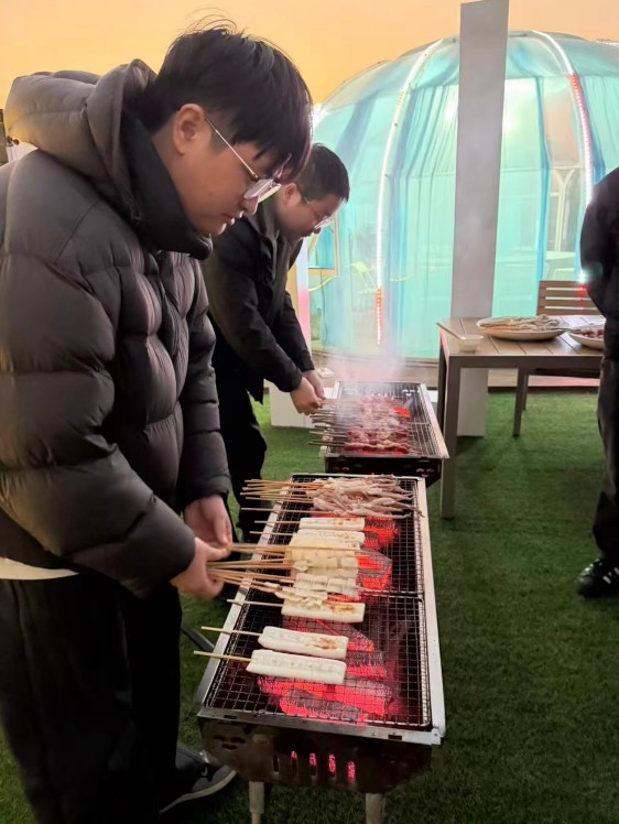 W ramach integracji zespołu zorganizowano także samoobsługowy grill dla pracowników. Podczas wydarzenia wszyscy wspólnie pracowali, przygotowując składniki i gotując, przy stołach zastawionych różnymi świeżymi składnikami i pysznymi daniami. Pracownicy siedzieli razem, ciesząc się grillem i rozmawiając o pracy i życiu, a śmiech i radość wypełniały powietrze. Wszyscy podnieśli kieliszki i wesoło rozmawiali, w pełni demonstrując harmonijną i ciepłą atmosferę pracy w zespole Yongjun Textile.